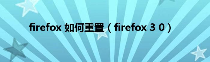 firefox 如何重置,firefox 3 0很多人还不知道,乐乐来为大家解答以上问题,现在让我们一起来看看吧!