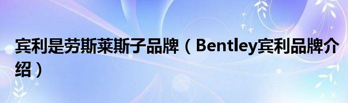 大家好,小源来为大家解答以上问题。宾利是劳斯莱斯子品牌,Bentley宾利品牌介绍很多人还不知道,现在让我们一起来看看吧!