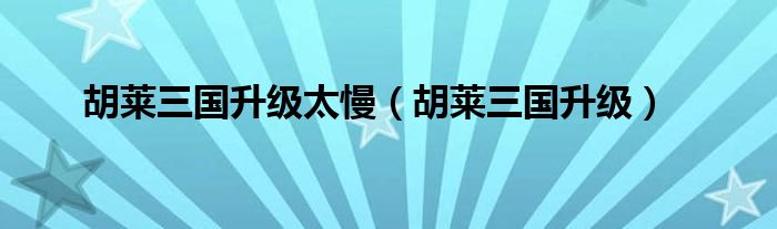 大家好,来宝来为大家解答以下问题,胡莱三国升级太慢,胡莱三国升级很多人还不知道,今天让我们一起来看看吧!