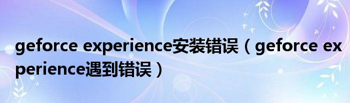 大家好,雨雨来为大家解答以上问题,geforce experience安装错误,geforce experience遇到错误很多人还不知道,现在让我们一起来看看吧!