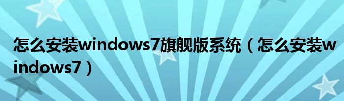 大家好,雨雨来为大家解答以上问题,怎么安装windows7旗舰版系统,怎么安装windows7很多人还不知道,现在让我们一起来看看吧!
