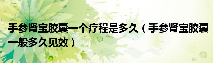 大家好,linda来为大家解答以上的问题。手参肾宝胶囊一个疗程是多久,手参肾宝胶囊一般多久见效很多人还不知道,现在让我们一起来看看吧!