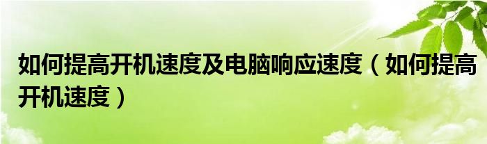 大家好,雨雨来为大家解答以上问题,如何提高开机速度及电脑响应速度,如何提高开机速度很多人还不知道,现在让我们一起来看看吧!
