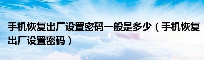 大家好,雨雨来为大家解答以上问题,手机恢复出厂设置密码一般是多少,手机恢复出厂设置密码很多人还不知道,现在让我们一起来看看吧!