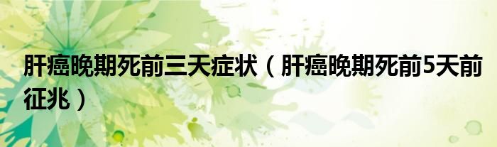 2、晚期肝癌在死亡前五天的具体表现可能因人而异,但主要表现为剧烈疼痛、腹胀、肝腹水,也可能表现为重度黄疸。