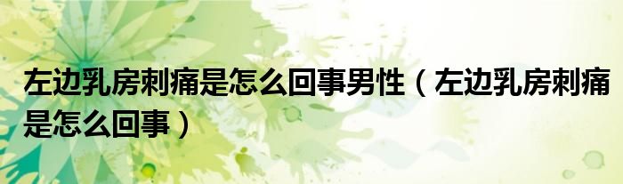 大家好,linda来为大家解答以上的问题。左边乳房刺痛是怎么回事男性,左边乳房刺痛是怎么回事很多人还不知道,现在让我们一起来看看吧!