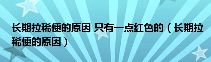 大家好,linda来为大家解答以上的问题。长期拉稀便的原因 只有一点红色的,长期拉稀便的原因很多人还不知道,现在让我们一起来看看吧!