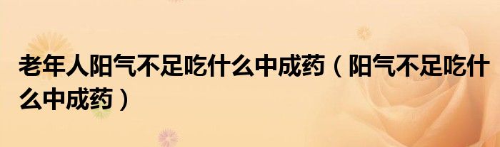 大家好,linda来为大家解答以上的问题。老年人阳气不足吃什么中成药,阳气不足吃什么中成药很多人还不知道,现在让我们一起来看看吧!