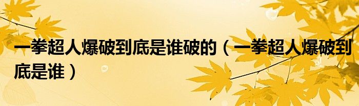大家好,小晋来为大家解答以下问题,关于一拳超人爆破到底是谁破的,一拳超人爆破到底是谁很多人还不知道,今天让我们一起来看看吧!