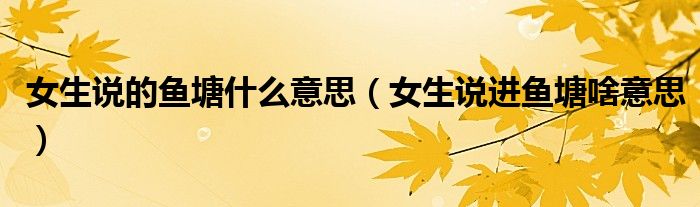 大家好,小晋来为大家解答以下问题,关于女生说的鱼塘什么意思,女生说进鱼塘啥意思很多人还不知道,今天让我们一起来看看吧!