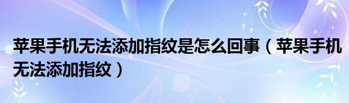 大家好,小晋来为大家解答以下问题,关于苹果手机无法添加指纹是怎么回事,苹果手机无法添加指纹很多人还不知道,今天让我们一起来看看吧!