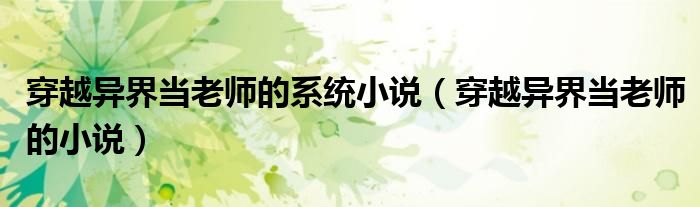 大家好,小晋来为大家解答以下问题,关于穿越异界当老师的系统小说,穿越异界当老师的小说很多人还不知道,今天让我们一起来看看吧!