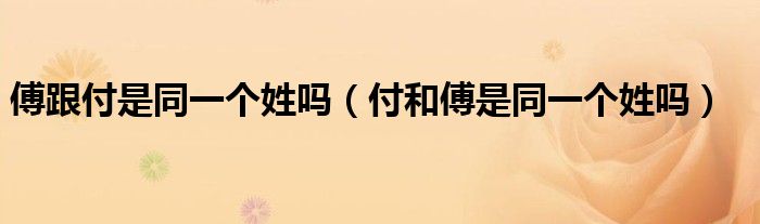 大家好,小晋来为大家解答以下问题,关于傅跟付是同一个姓吗,付和傅是同一个姓吗很多人还不知道,今天让我们一起来看看吧!
