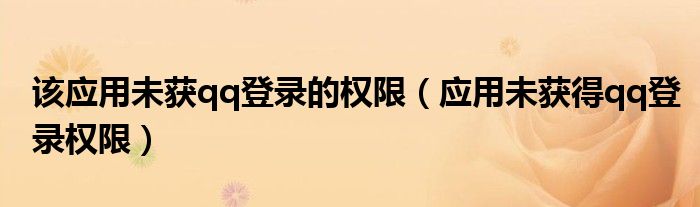 大家好,小晋来为大家解答以下问题,关于该应用未获qq登录的权限,应用未获得qq登录权限很多人还不知道,今天让我们一起来看看吧!