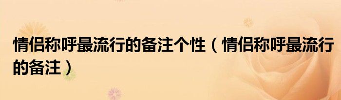 大家好,小晋来为大家解答以下问题,关于情侣称呼最流行的备注个性,情侣称呼最流行的备注很多人还不知道,今天让我们一起来看看吧!