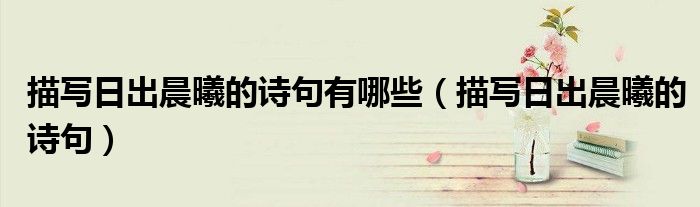 大家好,小晋来为大家解答以下问题,关于描写日出晨曦的诗句有哪些,描写日出晨曦的诗句很多人还不知道,今天让我们一起来看看吧!