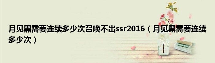 大家好,小晋来为大家解答以下问题,关于月见黑需要连续多少次召唤不出ssr2016,月见黑需要连续多少次很多人还不知道,今天让我们一起来看看吧!