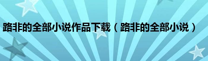 大家好,小晋来为大家解答以下问题,关于路非的全部小说作品下载,路非的全部小说很多人还不知道,今天让我们一起来看看吧!