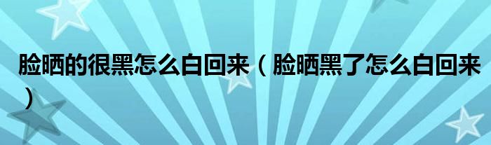 大家好,小晋来为大家解答以下问题,关于脸晒的很黑怎么白回来,脸晒黑了怎么白回来很多人还不知道,今天让我们一起来看看吧!