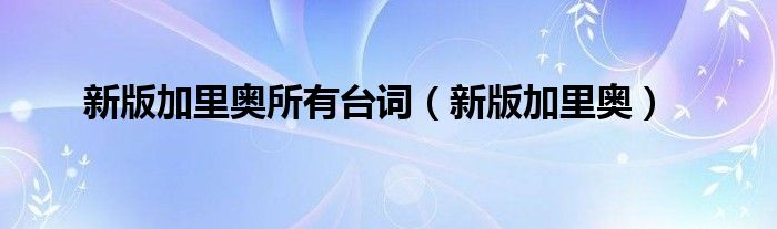 新版加里奥所有台词,新版加里奥很多人还不知道,乐乐来为大家解答以上问题,现在让我们一起来看看吧!
