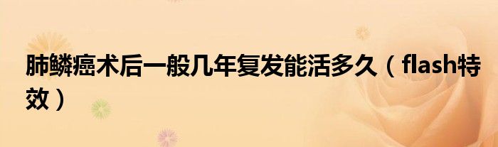 肺鳞癌术后一般几年复发能活多久,flash特效很多人还不知道,乐乐来为大家解答以上问题,现在让我们一起来看看吧!