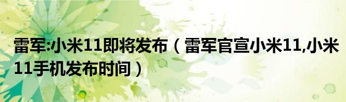 大家好,小常来为大家解答以上问题。雷军:小米11即将发布,雷军官宣小米11,小米11手机发布时间很多人还不知道,现在让我们一起来看看吧!