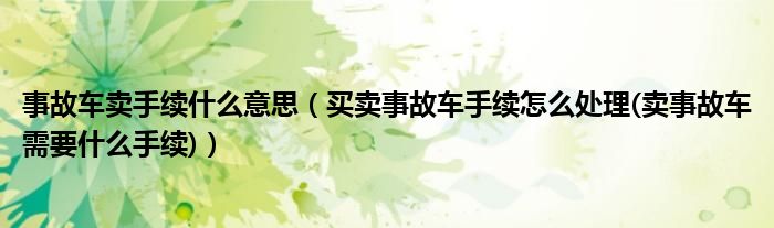 大家好,小常来为大家解答以上问题。事故车卖手续什么意思,买卖事故车手续怎么处理(卖事故车需要什么手续)很多人还不知道,现在让我们一起来看看吧!