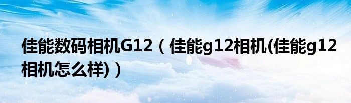 一.佳能G12相机怎么样: