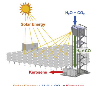 作为 SUN-to-LIQUID 项目的一部分,Steinfeld 和他的同事开发了一种系统,该系统利用太阳能生产可直接使用的燃料,这些燃料是煤油和柴油等化石衍生燃料的合成替代品。斯坦菲尔德说,太阳能制造的煤油与现有的航空基础设施完全兼容,用于燃料储存、分配和最终用于喷气发动机。他补充说,它也可以与化石衍生的煤油混合。