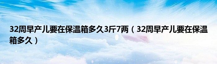 大家好,linda来为大家解答以上的问题。32周早产儿要在保温箱多久3斤7两,32周早产儿要在保温箱多久很多人还不知道,现在让我们一起来看看吧!