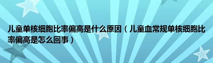 大家好,linda来为大家解答以上的问题。儿童单核细胞比率偏高是什么原因,儿童血常规单核细胞比率偏高是怎么回事很多人还不知道,现在让我们一起来看看吧!