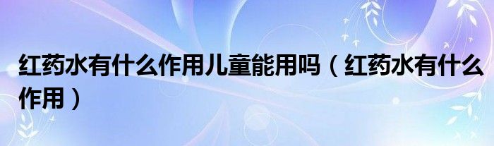 大家好,linda来为大家解答以上的问题。红药水有什么作用儿童能用吗,红药水有什么作用很多人还不知道,现在让我们一起来看看吧!
