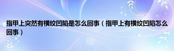 大家好,linda来为大家解答以上的问题。指甲上突然有横纹凹陷是怎么回事,指甲上有横纹凹陷怎么回事很多人还不知道,现在让我们一起来看看吧!