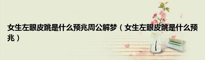 大家好,linda来为大家解答以上的问题。女生左眼皮跳是什么预兆周公解梦,女生左眼皮跳是什么预兆很多人还不知道,现在让我们一起来看看吧!