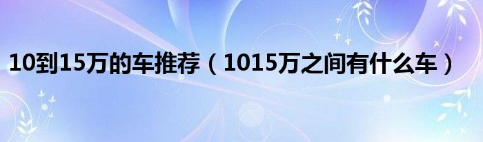 大家好,小常来为大家解答以下问题,对于10到15万的车推荐,1015万之间有什么车很多人还不知道,今天让我们一起来看看吧!
