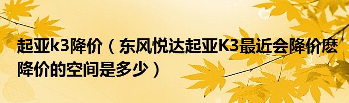 1,东风悦达起亚K3最近会降价麽降价的空间是多少:最近不会降,新车上市肯定没什么优惠,年后可能就会降了,可能总体优惠将达到1万以上