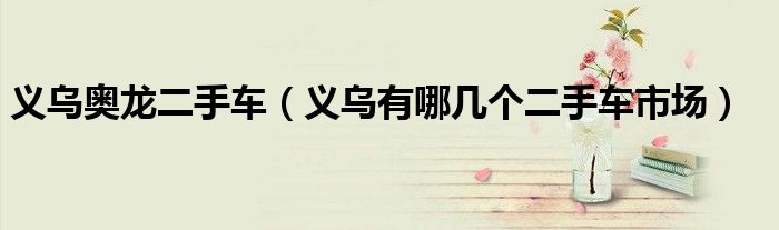 大家好,小常来为大家解答以下问题,对于义乌奥龙二手车,义乌有哪几个二手车市场很多人还不知道,今天让我们一起来看看吧!