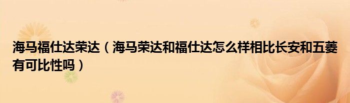 1,海马荣达和福仕达怎么样相比长安和五菱有可比性吗:没有、不管是维修还是保养、都没有五菱好、