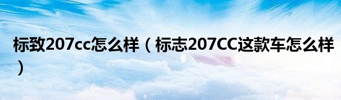 1,标志207CC这款车怎么样 :我到4S店试过,感觉还可以,动力一般,车子做工还可以,价格在进口车里也还算公道,就是感觉实用性差一些,空间太小。如果你不在乎空间的话,我觉得可以考虑够买