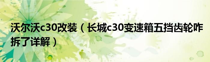 大家好,小常来为大家解答以下问题,对于沃尔沃c30改装,长城c30变速箱五挡齿轮咋拆了详解很多人还不知道,今天让我们一起来看看吧!
