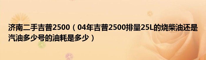大家好,小常来为大家解答以下问题,对于济南二手吉普2500,04年吉普2500排量25L的烧柴油还是汽油多少号的油耗是多少很多人还不知道,今天让我们一起来看看吧!