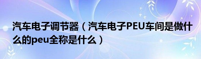 大家好,小常来为大家解答以下问题,对于汽车电子调节器,汽车电子PEU车间是做什么的peu全称是什么很多人还不知道,今天让我们一起来看看吧!