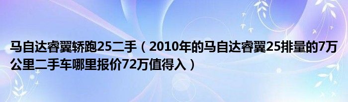 1,2010年的马自达睿翼25排量的7万公里二手车哪里报价72万值得入:贵,价格偏高,马自达保值率比其他日系低,10年的车有国四也有国三排放标准,国四还可以国三就不值钱了。合理价格在5W左右。