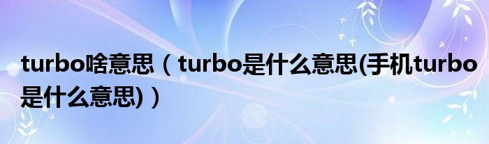 一.turbo是什么意思: