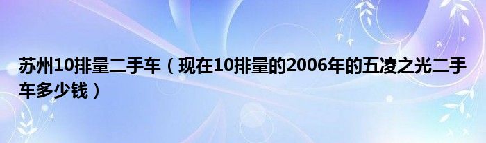 大家好,小常来为大家解答以下问题,对于苏州10排量二手车,现在10排量的2006年的五凌之光二手车多少钱很多人还不知道,今天让我们一起来看看吧!