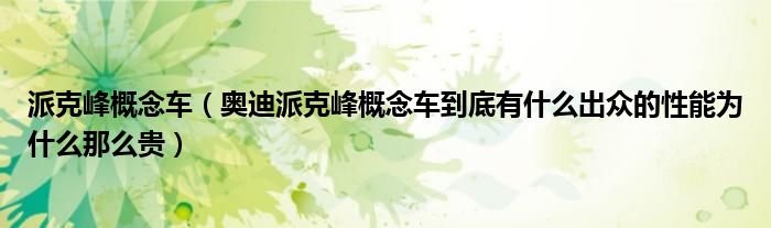 大家好,小常来为大家解答以下问题,对于派克峰概念车,奥迪派克峰概念车到底有什么出众的性能为什么那么贵很多人还不知道,今天让我们一起来看看吧!
