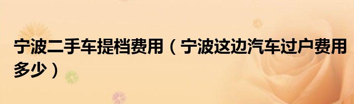 大家好,小常来为大家解答以下问题,对于宁波二手车提档费用,宁波这边汽车过户费用多少很多人还不知道,今天让我们一起来看看吧!