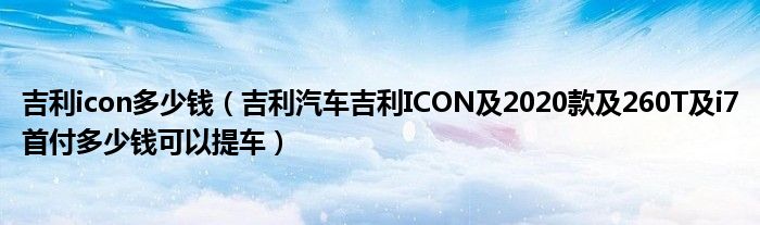 大家好,小常来为大家解答以下问题,对于吉利icon多少钱,吉利汽车吉利ICON及2020款及260T及i7首付多少钱可以提车很多人还不知道,今天让我们一起来看看吧!
