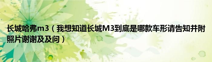 大家好,小常来为大家解答以下问题,对于长城哈弗m3,我想知道长城M3到底是哪款车形请告知并附照片谢谢及及问很多人还不知道,今天让我们一起来看看吧!