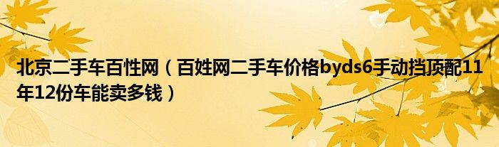 大家好,小常来为大家解答以下问题,对于北京二手车百性网,百姓网二手车价格byds6手动挡顶配11年12份车能卖多钱很多人还不知道,今天让我们一起来看看吧!